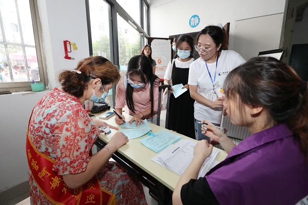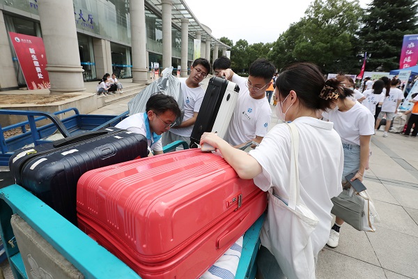 新生报到点现场井然有序,报到工作有条不紊。今年由于疫情防控的需要,家长无法陪同进校。为了让家长们放心,学校安排了接驳车,志愿者们帮助搬运行李并引导新生入校。校园里到处充满了热情与温情。