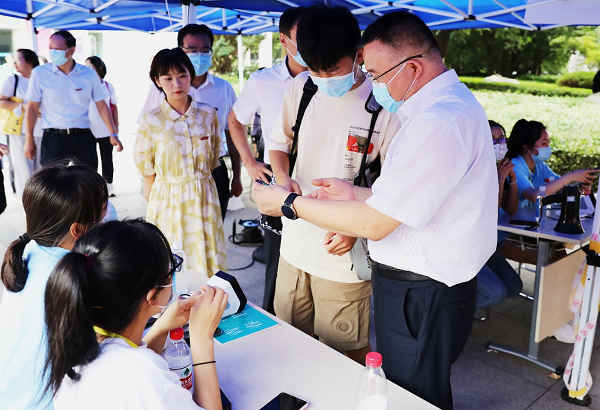 9月12日,必赢官网迎来了2078名2021级新生。校党政领导班子成员在相关部门负责人的陪同下集中走访慰问了校内各主要新生接待点,询问开学报到情况,对师生志愿者表示亲切慰问。