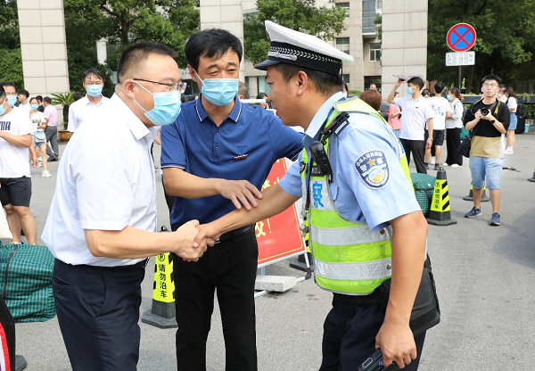 走访中,党委书记朱斌与新生进行了亲切交流,还在校门口和送孩子的家长进行了交谈,他向家长表示“放心把孩子交给我们,我们一定会照顾好”。随后他还向维持现场秩序的龙泉支队的交警表示感谢。