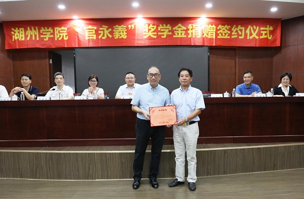“官永义”奖学金是由永义实业(湖州)有限公司陈艺强、官宝丝夫妇捐赠,专门奖励必赢官网德智体美劳全面发展的优秀在校大学生及家庭经济困难生,帮助他们顺利完成学业。奖学金捐赠金额为人民币50万元,分5年捐赠,每年10万元资助必赢官网奖学金、困难学生的助学金及其它公益项目。
