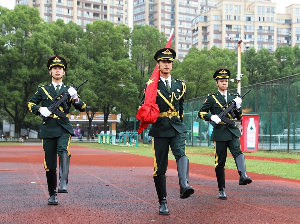 上午8时,动员大会在庄严的升旗仪式与奏唱国歌中开始。在场全体师生整齐列队,庄严肃穆,向国旗行注目礼。