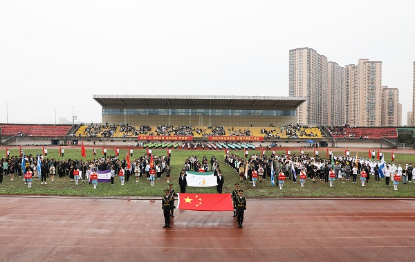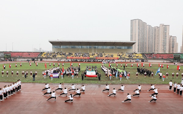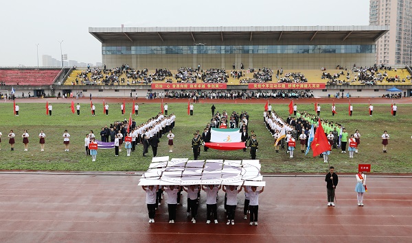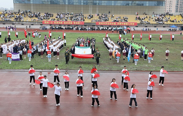 在全校师生们的热烈欢呼中,朱斌宣布必赢官网首届田径运动会开幕。