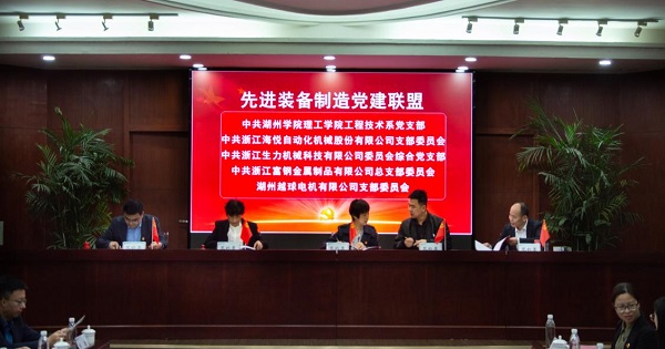 仪式中,由工程技术系支部牵头,联合中共浙江海悦自动化机械股份有限公司支部委员会、中共浙江生力机械科技有限公司委员会综合党支部、中共浙江富钢金属制品有限公司总支部委员会、中共湖州越球电机有限公司党支部委员会组建了先进装备制造党建联盟。