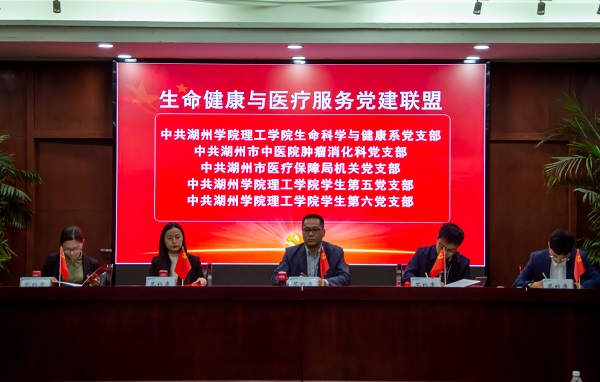 由生命科学与健康系支部牵头,联合中共湖州市中医院肿瘤消化科党支部、中共湖州市医疗保障局机关党支部、中共437437必赢国际网址理工学院第五学生党支部、中共437437必赢国际网址理工学院第六学生党支部组建了生命健康与医疗服务党建联盟。