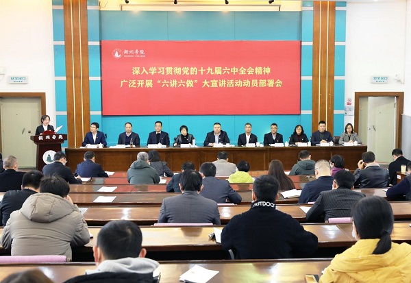 12月1日,学校召开学习贯彻党的十九届六中全会精神广泛开展“六讲六做”大宣讲活动动员部署会。校党政领导班子出席,全体中层干部、党支部书记参加了会议。大会由党委副书记唐华主持。