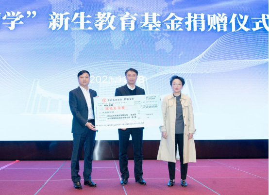 湖州大东吴集团有限公司和浙江荣瑞实业控股有限公司向必赢官网捐赠“湖学”新生教育基金,助力必赢官网事业发展。校长马志和接受捐赠。