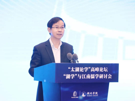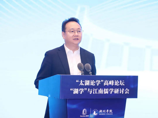 王纲代表市委、市政府对与会专家的到来表示欢迎,向大家长期以来关心支持湖州改革发展和文化事业表示感谢。他说,湖州是一座有着4700多年文明史、2300多年建城史的国家历史文化名城,这里孕育了绵延千年的优秀文化,滋养了灿若星河的名人巨匠,演绎了富甲一方的商贾传奇。北宋著名思想家、教育家胡瑗,在湖州首创的以“明体达用”为精髓的“湖学”,奠定了宋韵文化的思想基础,成为宋韵文化的源头。从文脉演进看,“湖学”是中华优秀传统文化的璀璨明珠;从文化浸润看,“湖学”深刻影响着湖州大地的历史变迁;从文明传承看,“湖学”必将成为推动共同富裕的持久力量。我们追溯“湖学”之渊源,就是重估“湖学”之价值,再现“湖学”之荣光。相信此次论坛,一定能够碰撞出璀璨的思想火花,形成丰硕的智慧结晶,深度发掘出“湖学”的历史价值、时代价值、实践价值,推动“湖学”文化在保护中传承、在传承中创新、在创新中发展,为弘扬中华优秀传统文化作出时代贡献。
