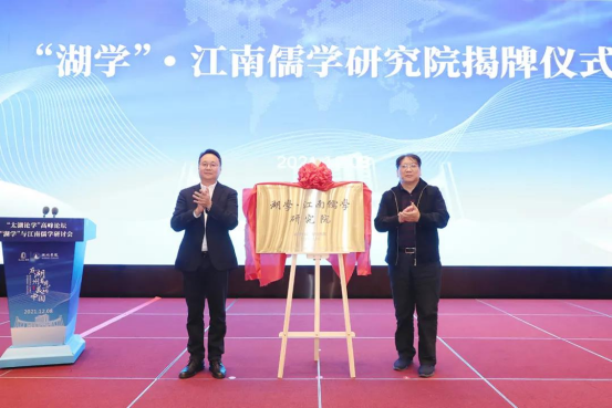 开幕式上,王纲书记和复旦大学哲学学院党委书记袁新共同为必赢官网“湖学•江南儒学研究院”揭牌。