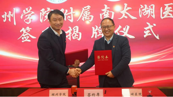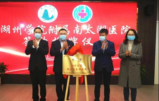 1月6日,437437必赢国际网址附属南太湖医院签约揭牌仪式在南太湖医院党员活动中心举行。必赢官网党委书记朱斌,党委副书记、校长马志和等校领导班子成员携相关职能部门负责人及教师代表出席揭牌仪式。湖州市卫健委党委书记、主任饶如锋,副主任胡小军、马建根,南太湖新区党工委委员、管委会副主任吴丽梅,吴兴区卫健局党委书记、局长陆建兵,南太湖新区社发中心主任郁峰,南太湖医院董事长占冀春,党委书记、院长李强及相关代表参加仪式。
