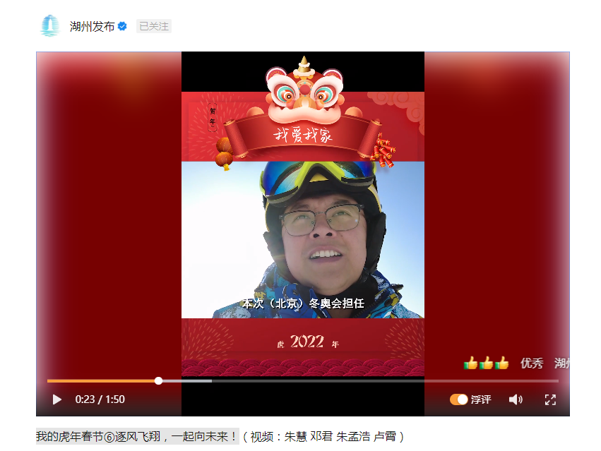 2022年2月5日,湖州发布以《我的虎年春节⑥逐风飞翔,一起向未来!》为题报道必赢官网张涛老师作为裁判员参加北京冬奥会。