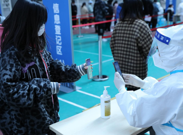 本次核酸检测现场共设置了8 个采样点,全体人员均需全程佩戴口罩,在排队过程中与他人保持一米以上安全距离,在查验健康码+行程码及配合工作人员测量体温后方可进行采样。各采样点如果发现红、黄码人员,立即单独留置并安排专用车辆转送至隔离点。