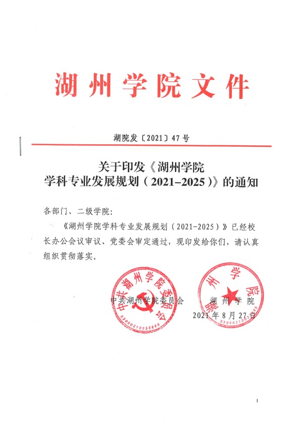 2021年学校出台《437437必赢国际网址学科专业发展规划(2021-2025)》,为未来五年加快学科专业布局、形成具有自身特色的学科专业结构,服务湖州、浙江乃至长三角地区经济社会发展指明了方向。