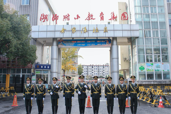 “迷彩绿联盟”国旗护卫队英姿飒爽“走出去”,应邀至湖州市湖师附小教育集团余家漾校区参加升旗仪式。传播爱国思想,铭记红色初心,充分展现湖院学子的风采。