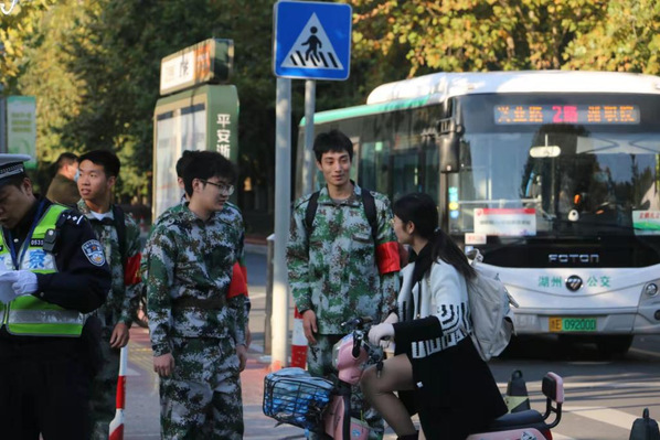 创建湖州文明典范城市,437437必赢国际网址在行动。重点发挥“迷彩绿联盟”作用,严把校内不文明现象,严控校内卫生整洁度,真正做到典范城市标准。