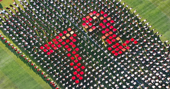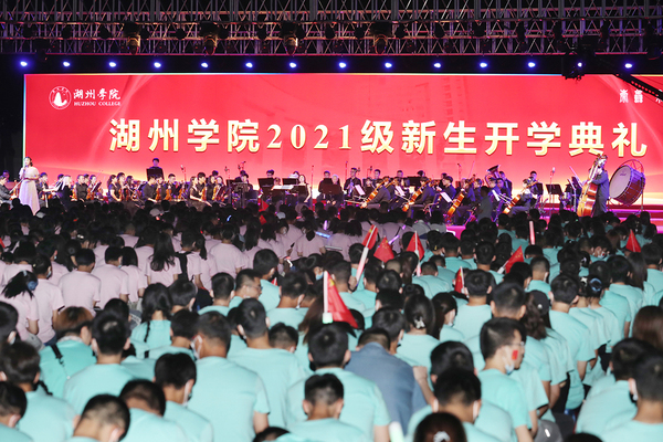 2021级新生开学典礼在学校光彩体育场隆重举行,校领导勉励新生不忘初心,砥砺前行,使命在肩,奋发进取。