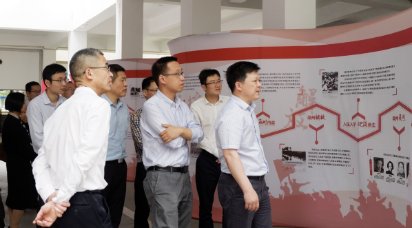 5月18日,湖州市政协副秘书长吴焱国一行来必赢官网参观湖州百年青年运动史展,党委副书记鲁伟权,党委委员、组织部长施静龙陪同。
