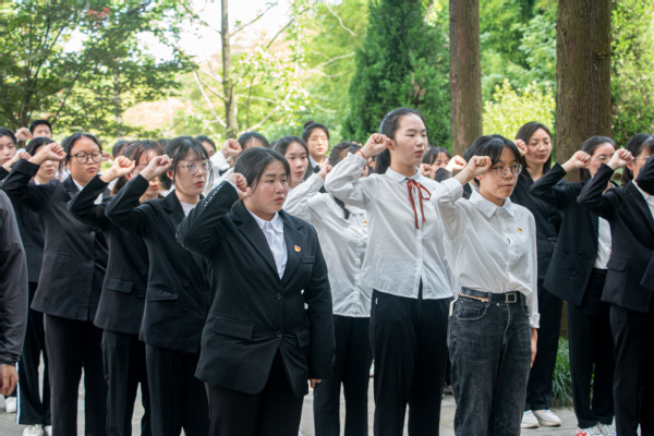 默哀后,怀着肃穆与崇敬的心情,各支部书记向41名预备党员佩戴党徽,在革命先烈前郑重宣誓。