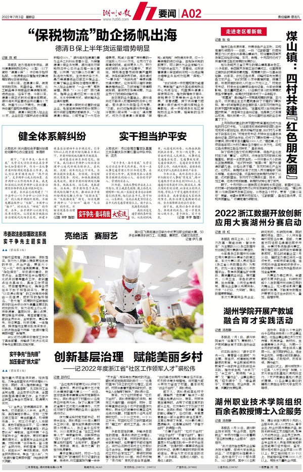2022年7月3日,湖州日报以《437437必赢国际网址开展产教城融合育才实践活动》为题报道必赢官网举行“白鹭齐飞 夏耕树人”产教城融合育才实践活动出征仪式。