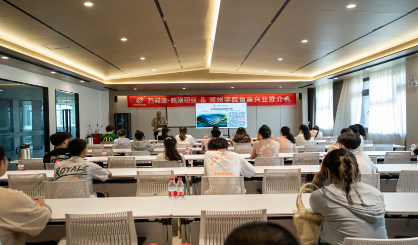 在栋梁铝业有限公司(以下简称“栋梁铝业”),HR招聘/培训经理陈荣清首先代表栋梁铝业对大家的到来表示热烈的欢迎,随后他详细介绍了栋梁铝业的发展历程、公司理念、核心业务板块、公司未来展望、员工福利等,最后他对湖院学子进行邀约:欢迎同学们到栋梁铝业实习就业,成就精彩人生。