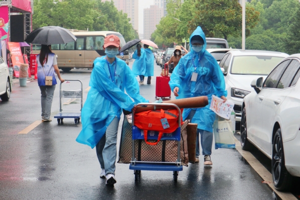 今天一直下着雨,但迎新现场气氛持续火爆,所有师生志愿者都在坚守岗位,等待新生的到来。在各二级学院的迎新接待点,校领导详细询问了新生录取与报到的实际情况,对各二级学院的迎新工作给予了充分肯定,并对参与迎新工作的师生表示慰问。同时要求各学院要耐心细致,进一步把迎新工作做细做实,以优质高效的服务、细致周到的安排,让家长满意、让学生安心,使新生尽快适应并融入学校生活。