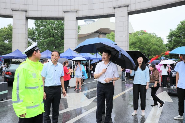 走访中,校领导一行又来到校门口实地查看了新生迎接和疫情防控工作,与现场维持交通秩序的龙泉支队的交警进行了交流,向他们表示感谢。