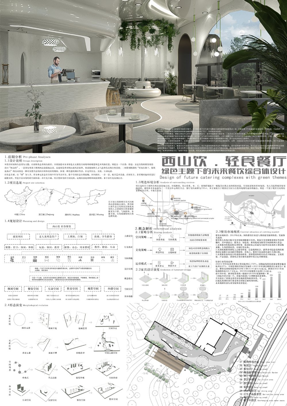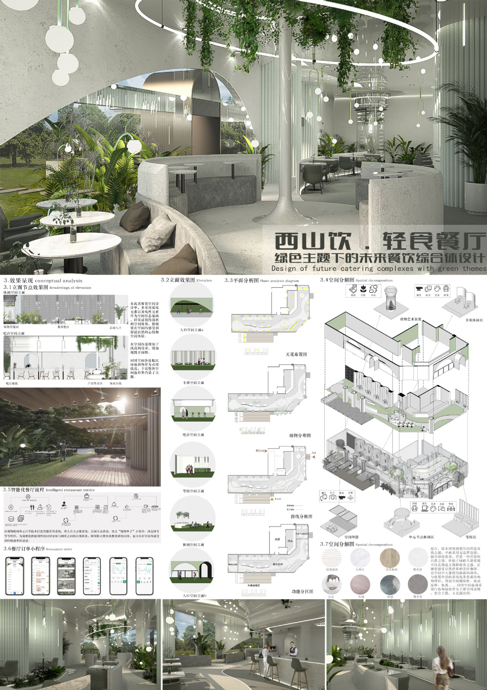 《西山饮——绿色主题下的未来餐饮综合体设计》作者:王若冰,程嘉南;指导教师:李文莲,毛攀云