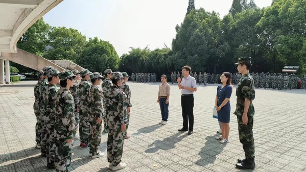 沙场秋点兵,军训正当时。为充分了解学院2022级新生军训情况,鼓励新生在军训中学有所获,圆满完成军事训练。9月8日上午,电子信息学院党委书记黄旭、副院长周利玲、党委副书记姜杨慧一行前往光彩体育场慰问2022级参训学生及带训教官,提前为同学们送去了一份特别的中秋礼物。