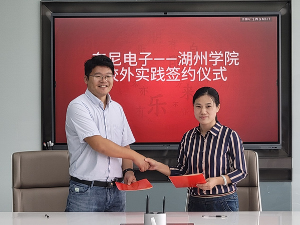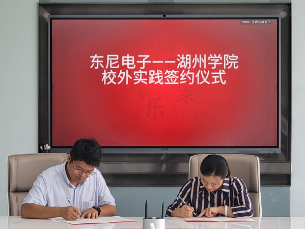 东尼电子人资总监杨永群,人资经理孙立姣,职工监事吴燕燕热情接待了学院一行。双方围绕应用型人才培养、学生实习就业、学科建设等议题进行了充分的交流,并在会后签订了校外实践基地协议。