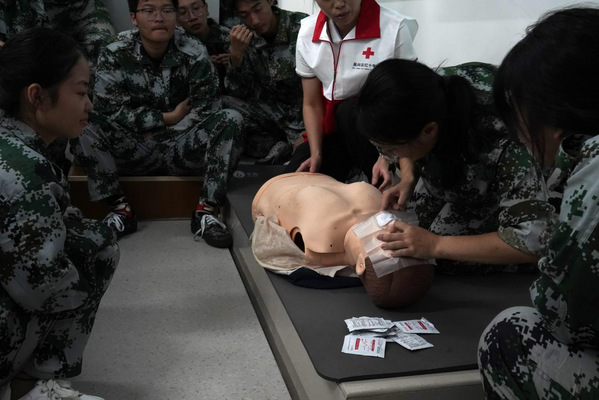 培训现场,同学们认真学习心肺复苏术的相关知识,并积极参与现场模拟操作。通过反复练习和培训师的点评指正,新生们逐步掌握了动作要领,并准确完成了基本的救护动作。