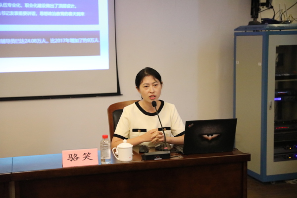 浙江省素质能力大赛一等奖获得者浙江大学骆笑分享《如何做一名辅导员》,她指出辅导员是大学体验的创造和与整合者,成为辅导员的每一天都需要保持爱与信念的传递,学会坚守与突破,她聚焦辅导员在日常工作中遇到的具体问题,围绕就业指导、公寓文化、心理健康等多个方面展开分享交流。辅导员要先广博再专精;保持领地意识,坚守阵地;重视外延,善于借力,讲出“好声音”,助力学子成才。