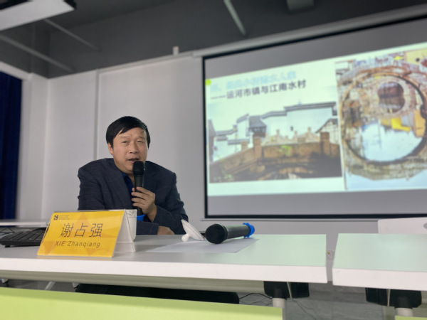 10月19日下午,设计学院邀请湖州市委宣传部副部长、社科联主席谢占强为学院教师们作“湖州古桥文化与传统水乡聚落”专题讲座,本次讲座由设计学院主办,设计学院副院长毛攀云教授主持讲座。