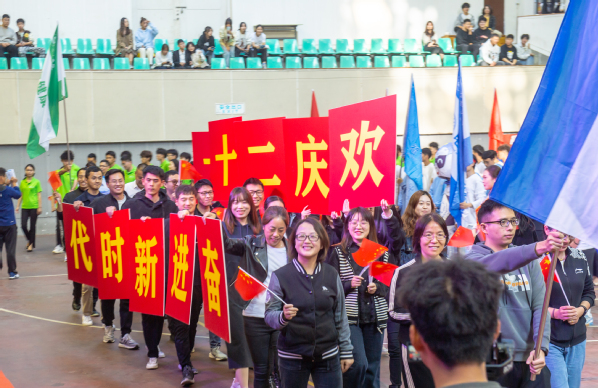 在全校师生的热烈欢呼中,朱斌宣布必赢官网第二届田径运动会开幕。
