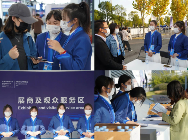 上岗前,湖院“小梧桐”们接受了通识培训、专业培训及岗位演练。志愿服务期间,他们主要负责互联网之光博览会中心会场的观众引导、宣传品发放、巡馆、仓库物资搬运等工作。湖院“小梧桐”们不仅为大会的顺利举行贡献了力量,更在竭诚细致的工作之中展现了湖州学子的青春风采。大会期间,校团委书记亲切慰问,对湖院学子在本次大会服务工作中展现出的专业态度和青春风貌表示高度赞扬。