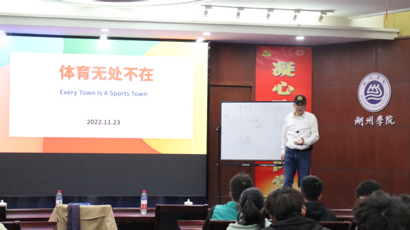 宋捷的讲座以《体育无处不在》为题,从分享湖州市承办浙江省第十六届运动会的台前幕后故事切入,从办好一个赛,谋好一个局,下好一盘棋三个方面为学生系统讲解了湖州体育建设的心路历程、湖州体育价值观的重塑两大方面的问题。从价值观到方法论,深入浅出,案例丰富,使学生充分认识到“发展体育运动,增强人民体质”在促进人的全面发展上的重要意义。他提出体育是一种生活方式,爱体育就是爱生活,引导学生思考做为体育专业的学生在服务全民健身、推进体育事业发展、促进体育强国建设上应该怎么努力。