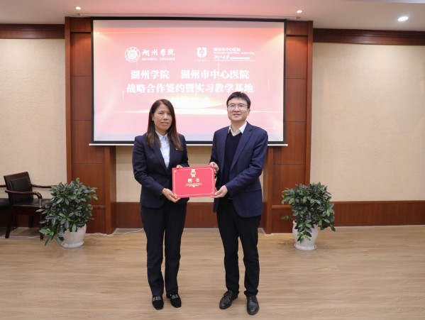 11月30日,学校与湖州市中心医院战略合作签约暨实习教学基地授牌仪式举行。湖州市卫健委党委委员、中心医院党委书记马建明,副院长严强、邱晟,护理部主任吕小英,校长马志和,党委副书记鲁伟权,副校长丁松泉、李祖欣,组织部部长施静龙出席,双方相关职能部门负责人、教师参加会议。