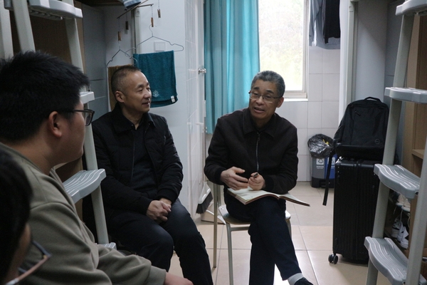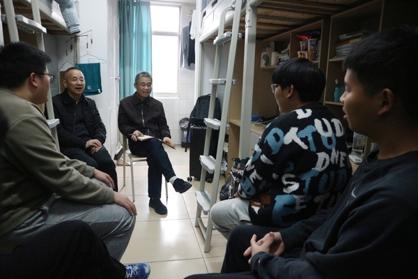 鲁伟权询问了室友们的大学适应情况,具体包括课业的进程和生活的适应。他提出,大学是知识储备的关键时期,应该增加纸质的阅读,在各方面拓展知识面;要学习好专业知识,科学合理安排碎片化时间,希望同学们科学规划大学生涯,珍惜时光、刻苦奋斗。同时,鲁伟权询问室友们对二十大精神是否学习、对国际形势是否关心,他提出当代大学生应对国家、社会时事关心,要紧跟时代步伐,在思想和行动上献上青春力量。