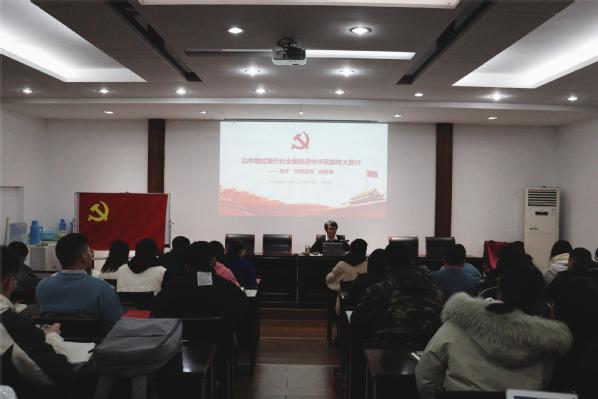 马克思主义学院(公共教学部)党总支书记、院长以“以中国式现代化全面推进中华民族伟大复兴——基于‘四重逻辑’的解读”为题进行讲座。讲座分为“准确把握党的二十大报告的整体结构”、“以中国式现代化全面推进中华民族伟大复兴的四重逻辑”、“在实践中学习宣传贯彻党的二十大精神”三个部分,并结合目前学校和各学院发展状况,从应用型人才培养、学科建设、学术研究、服务地方发展等方面为学校和学院的高质量、内涵式发展提出了自己的见解和建议。