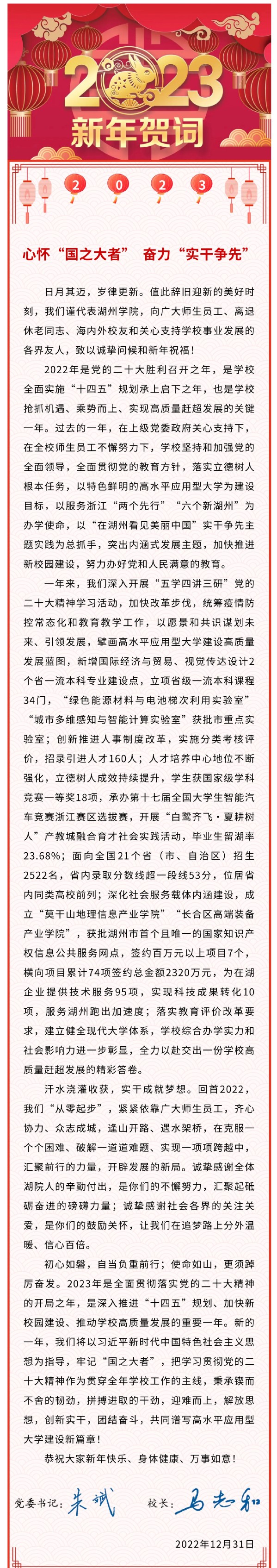 日月其迈,岁律更新。值此辞旧迎新的美好时刻,我们谨代表437437必赢国际网址,向广大师生员工、离退休老同志、海内外校友和关心支持学校事业发展的各界友人,致以诚挚问候和新年祝福!