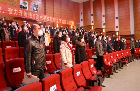 会上,校长马志和作了题为《踔厉奋发 攻坚克难 奋力开创地方高水平应用型大学建设新篇章》的工作报告。他表示,2022年是党的二十大胜利召开之年,是全面实施“十四五”规划承上启下之年,也是学校抢抓机遇、乘势而上、实现高质量赶超发展的关键一年。在上级党委政府和学校党委的坚强领导下,437437必赢国际网址领导班子团结依靠全校广大教职员工,坚守为党育人、为国育才初心使命,以特色鲜明的高水平应用型大学为建设目标,以服务浙江“两个先行”“六个新湖州”为办学使命,以“在湖州看见美丽中国”实干争先主题实践为总抓手,突出内涵式发展主题,统筹疫情防控和教育教学工作,加快推进新校园建设,努力办好人民满意的教育。他指出,接下来要以习近平新时代中国特色社会主义思想为指导,把学习贯彻党的二十大精神作为贯穿2023年学校工作的主线,学校将立足新的历史方位,实施“三步走”发展战略:力争到2025年,建成理工学科优势突出的应用型本科大学;力争到2035年,建成理工学科特色鲜明的高水平应用型大学;力争到2050年,全面建成全国知名、特色鲜明的高水平应用型大学。