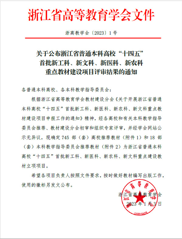 1部教材喜获省普通本科高校“十四五”首批重点教材建设项目立项。