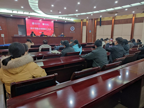 2023年2月22日下午,设计学院在明知楼203会议室召开了2023年度第一次全体教职工会议。学院全体教职工参加了此次会议。