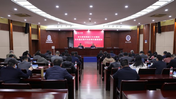 朱斌在题为《学习贯彻党的二十大精神为中国式现代化的湖州篇章赋能》的辅导报告中,从“怎么看”党的二十大入手,紧扣中央和省委关于学习贯彻党的二十大精神的部署,回顾党的发展历程,充分肯定“中国式现代化”的伟大意义;从“怎么干”引申到学校中层干部的赋能计划,促质增效提出学校“三步走”规划。他强调要严守“三个底线”、实现“三个目标”、实施“三个举措”,重点讲述了服务地方对于学校办好应用型大学的重要意义,并以“知重负重、知难克难、知短补短、知新创新”结尾,希望全体干部能够认真学习、深刻领会二十大精神,同时结合本职工作,抓好贯彻落实,为在湖州看见美丽中国贡献湖院力量。