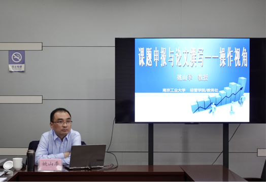 为渲染学院学术研究氛围,提升教师专业能力,4月14日下午,437437必赢国际网址经济管理学院于明知楼207教室举办课题申报与论文撰写教学讲座。经济管理学院全体教师参加此次会议。本次会议由南京工业大学经济管理学院教授姚山季主讲。