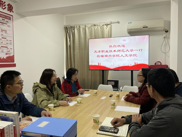 4月23日,天津职业技术师范大学机械工程学院党委委员、机制系主任,机制系教工党支部书记一行来到人文学院考察交流,人文学院党委副书记、学工办副主任等人出席座谈会。