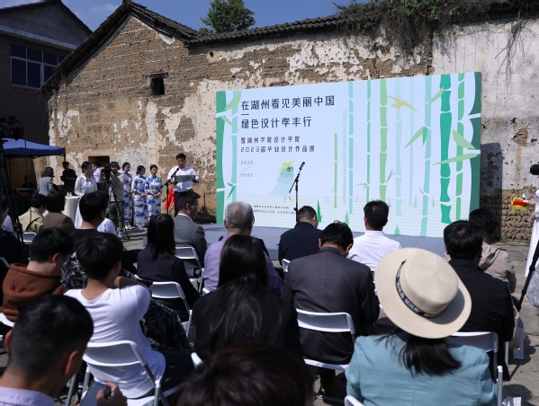 绿色设计赋能乡村振兴,设计学子助力共同富裕。4月26日,“在湖州看见美丽中国—绿色设计孝丰行”暨设计学院2023届毕业设计作品展在安吉县孝丰镇开幕。开幕式全程在校官方视频号、新华社现场云、抖音、哔哩哔哩、百度、微博、优酷、爱奇艺等15家线上直播平台进行同步直播,179.3万人次观看,图片直播浏览15万余次。