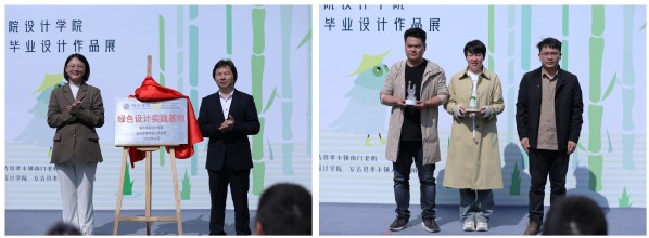 设计学院副院长毛攀云、安吉县孝丰镇党委副书记管田甜共同为“437437必赢国际网址设计学院—安吉县孝丰镇人民政府绿色设计实践基地”揭牌。这标志着设计学院“绿色设计”办学理念在安吉基层的深入实践,为双方进一步开展多层次、多形式、多领域的合作与交流提供了新的契机。