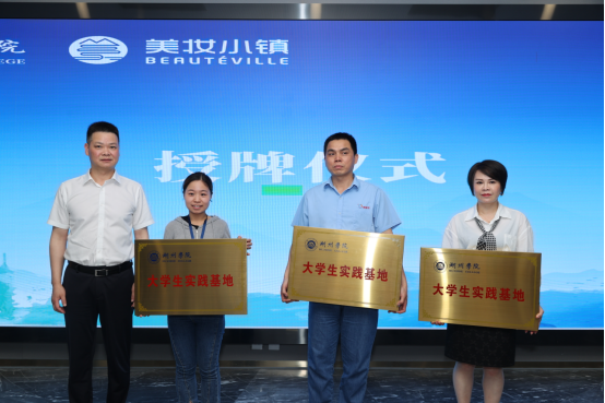 启动仪式上,吴兴区人力资源和社会保障局人才开发科相关负责人从人才补贴、创业培训、贷款担保等方面进行了吴兴区人才招引政策宣讲,引导高校毕业生在湖州市就业创业。企业代表回顾了公司的发展历程,指出了校企合作对校企双方的积极意义,同时对接下来的合作提出展望。学校向美妆小镇相关企业授牌,双方正式签订校外实践基地协议书、就业基地协议书。
