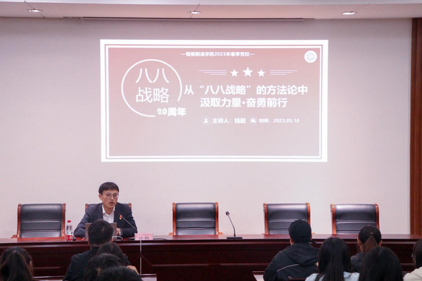 今年是“八八战略”实施20周年,为深入学习宣传贯彻习近平新时代中国特色社会主义思想,根据437437必赢国际网址《关于在全校开展“‘八八战略’在身边 沿着总书记足迹看湖州”大联学大调研大宣讲活动的通知》的部署要求,智能制造学院于2023年5月10日开展“八八战略”主题系列宣讲暨书记讲党课活动。