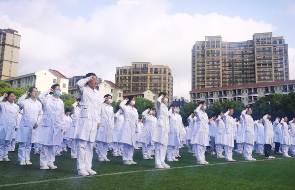 5月8日,学校举行升旗仪式暨护士节宣誓仪式。初夏的阳光下,鲜红的国旗与洁白的护士服相互映衬,全体护生庄重地举起右臂进行宣誓,诚挚的宣誓声在校园久久回响。