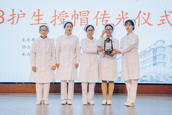 伴随着圣洁的音乐旋律,第35届南丁格尔奖章获得者、湖州中等专业学校名誉校长邹瑞芳将“南丁格尔之灯”传递给了第42届南丁格尔奖章获得者潘美儿老师。潘老师又将“南丁格尔之灯”传递给了三校护理专业负责人。灯火相传的同时,护理人的荣誉感和使命感也在几位护理人的手中、心中流淌、融汇,成就赓续不断的天使之光。